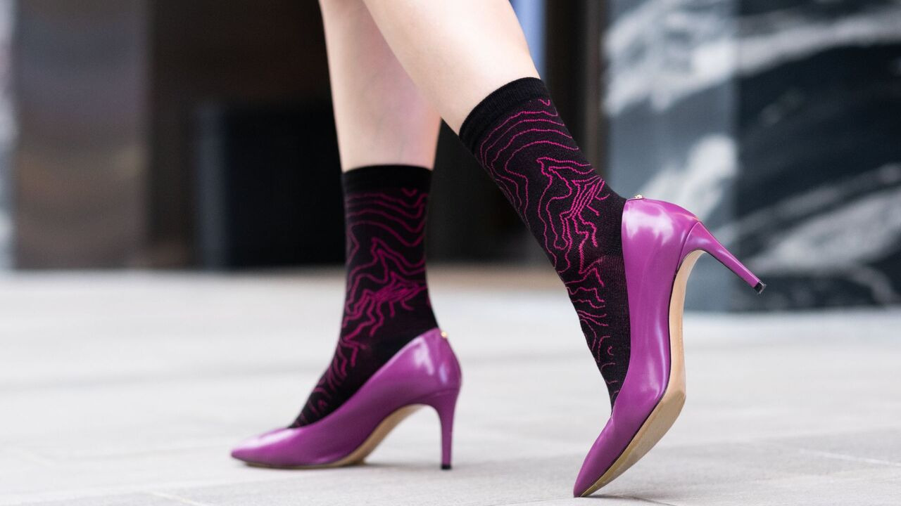 精選「蜜糖櫻粉」與「迷霧紫白」,完美呼應羊毛襪的洋紅色系,讓穿搭從呼吸到足尖,擁有一致的優雅質感。